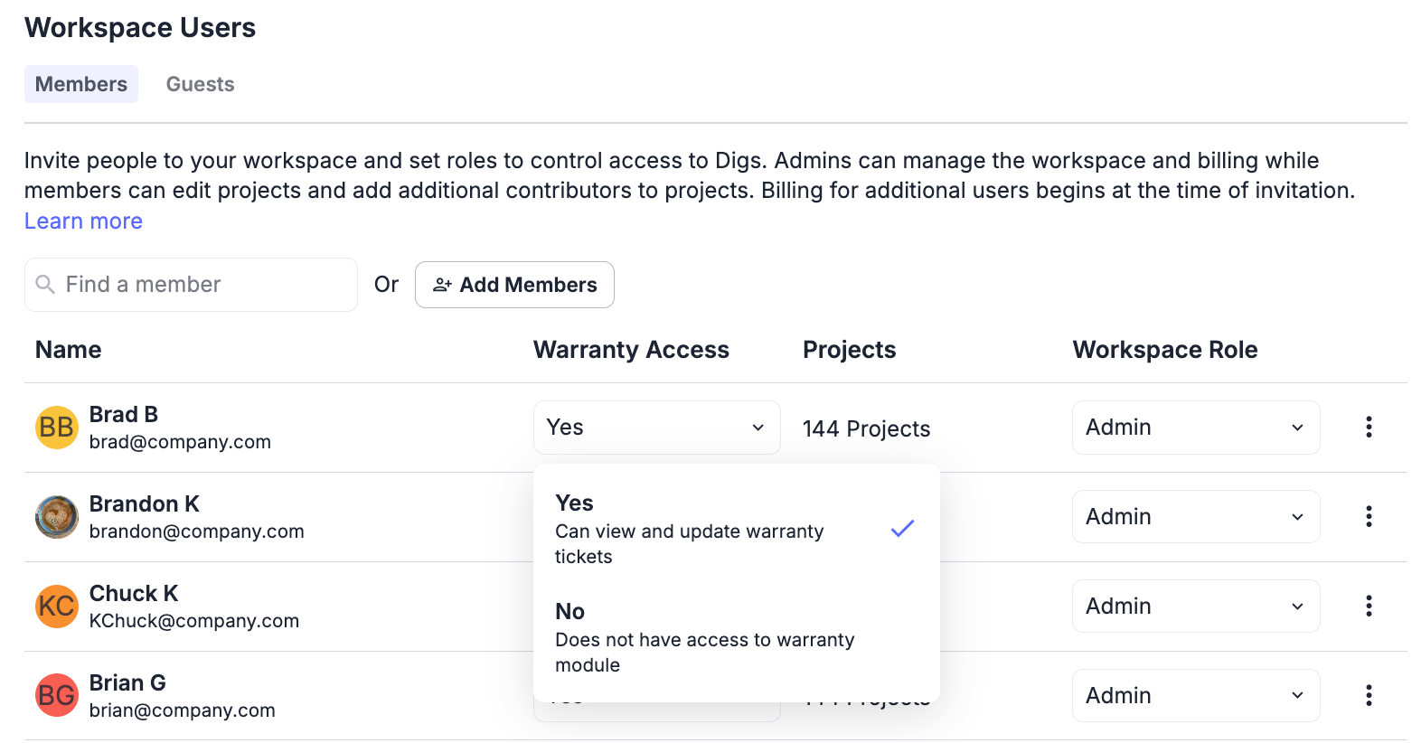 DigsCare Warranty access is now optional for Admins.
